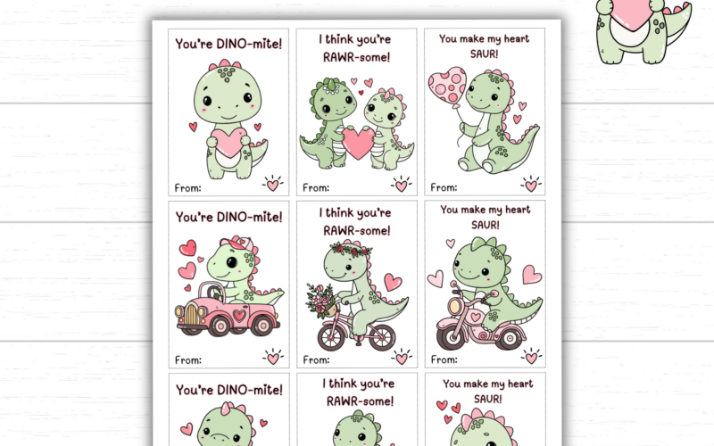 Adorable Dinosaur Valentine Cards Kids Will Love (2 Sets)