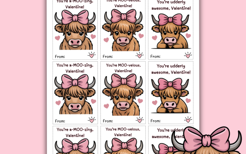Highland Cow Valentine Cards Printable for Kids, Farm Animal Valentines