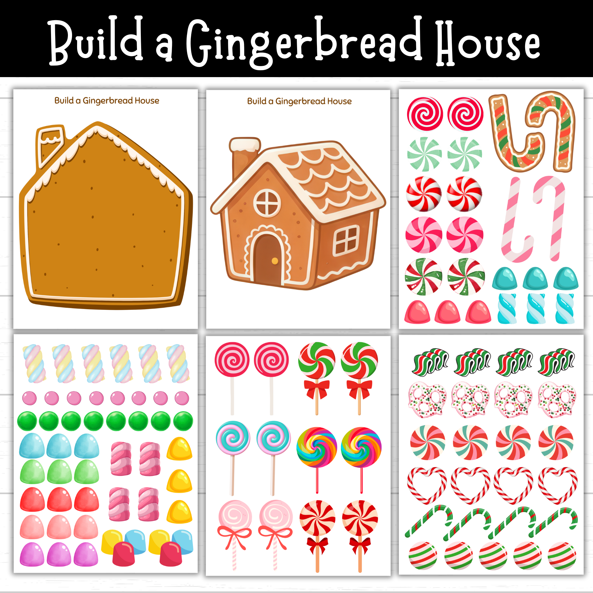 Print these festive season pages in a convenient PDF file format, making them easy to distribute in a classroom or at a gingerbread house decorating party.