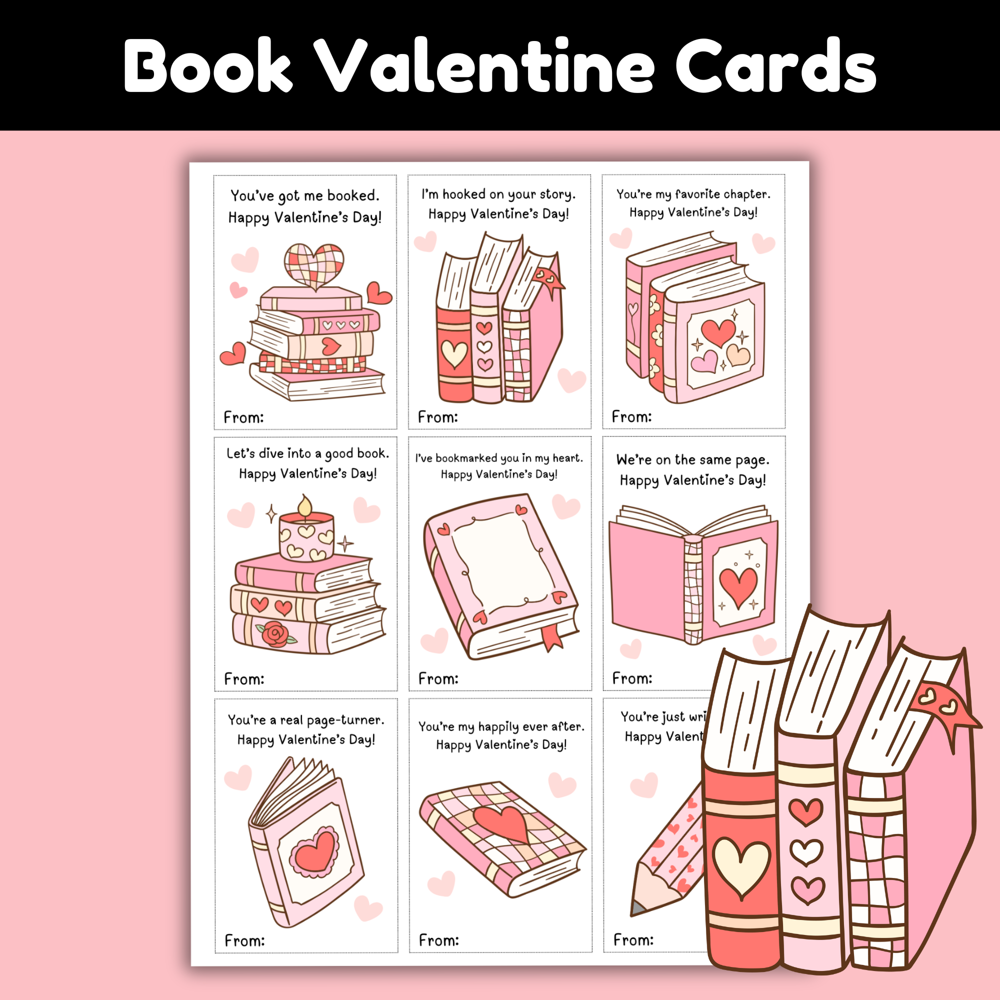 What’s Included in These Printable Book Valentine Cards