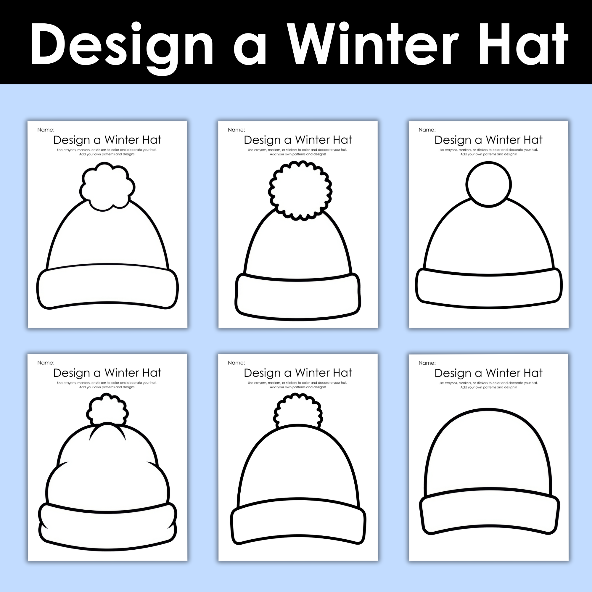 Each page in the pack features a unique winter hat outline, allowing kids to experiment with: